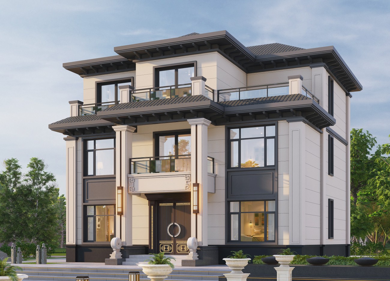 罗江17 三层新中式(10x12米)-【易设计】